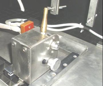 Test zapalności, zwany również testem pojedynczego źródła płomienia. Aparatura testowa odpowiada normie EN ISO